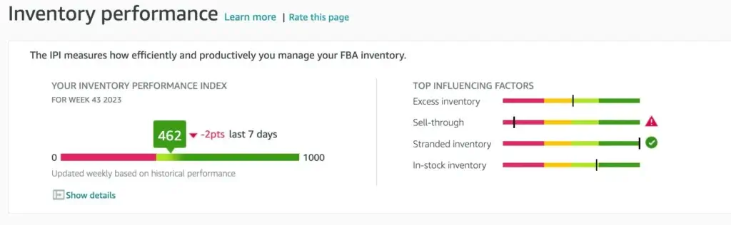Amazon also automatically tracks how well you manage your inventory through a metric called the Inventory Performance Index (IPI). Think of it as a credit score for your inventory. A high IPI score means you’re managing your stock efficiently, which in turn helps lower storage costs and improve profits.