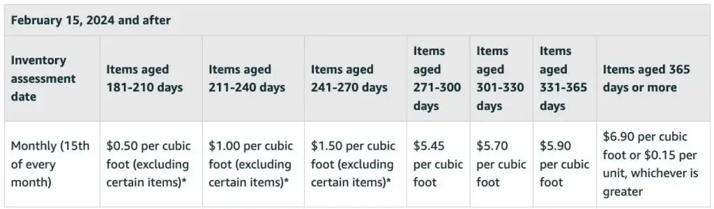 For items that have been sitting in the fulfillment center for 181 days or more, Amazon will charge the seller an additional fee called an aged inventory surcharge. The fee amount depends on the age of the products stored.