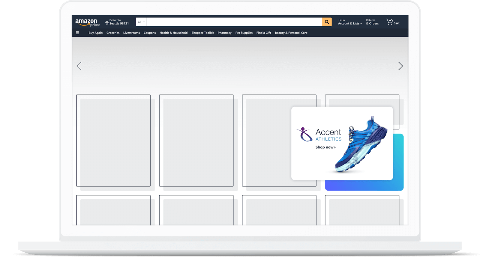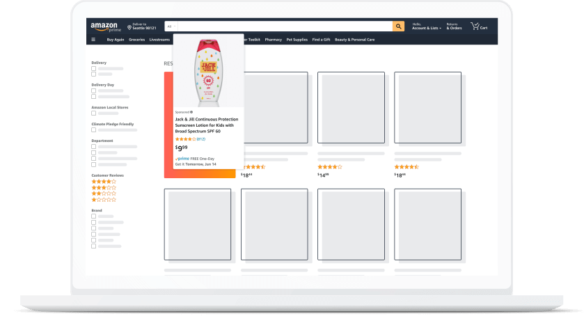- Sponsored Display: Expands visibility both on and off Amazon with placements on Amazon-owned and third-party platforms.