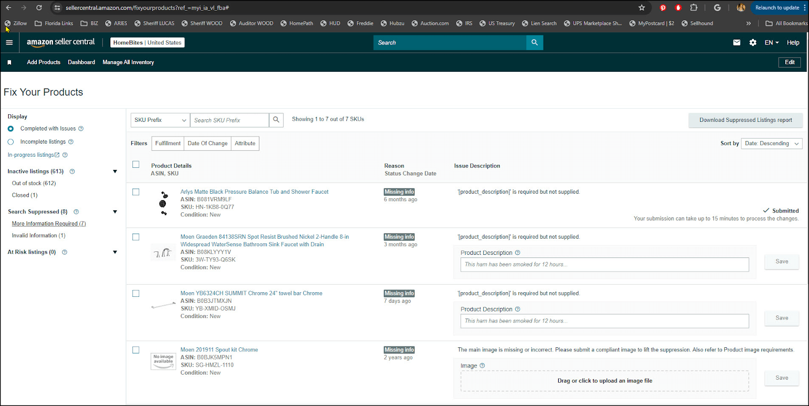 - How to Identify Issues: Log in to Seller Central, go to ‘Manage Inventory’, and check the ‘Suppressed Listings’ tab. Click on any affected product to review the error message. If it’s related to the title, Amazon will usually mark it with a red warning.