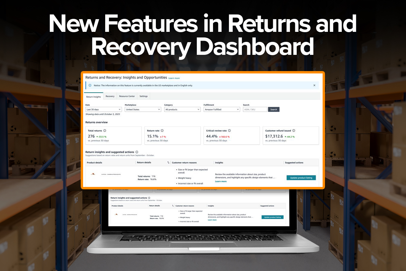Amazon has introduced new features to the Returns and Recovery: Insights and Opportunities dashboard, giving sellers deeper visibility into return trends and recovery performance, along with actionable recommendations to reduce losses.