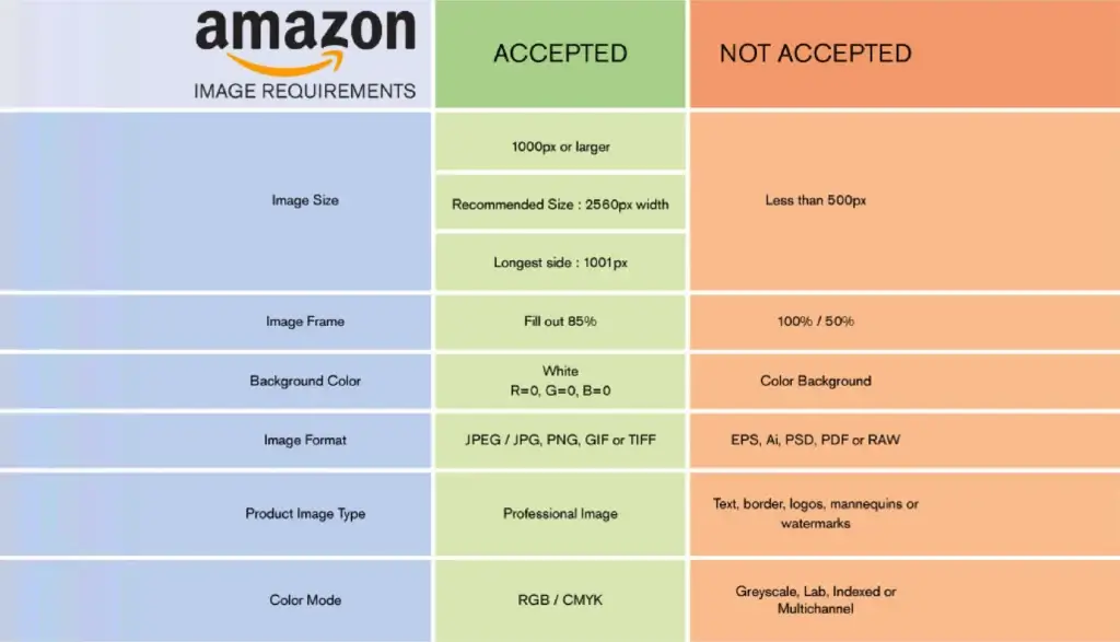 Image guidelines vary slightly based on the product category. For more specific information, you can visit this page on Amazon Seller Central.